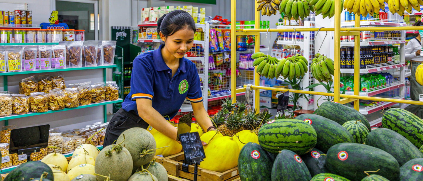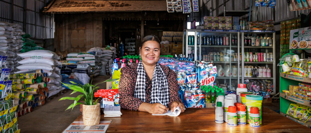 Sieng Sophanna, a mother of three, increased her family's income when she opened a small shop. After enrolling in the iDE agribusiness accelerator, she boosted her skill set, which has helped her grow her business and build trust with her clients.